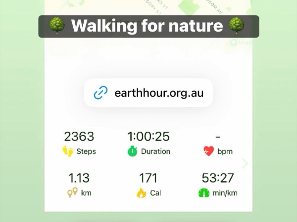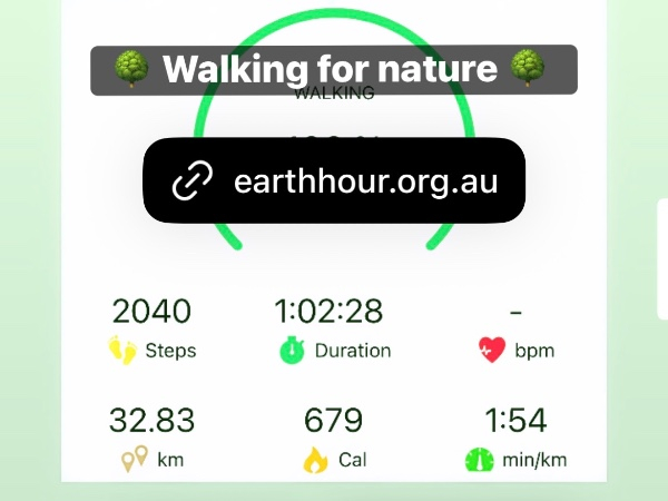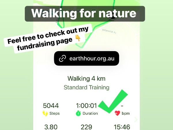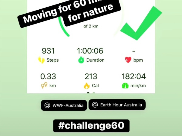 I am taking time out for nature and have joined the worlds biggest movement to protect our planet. By moving my body and raising vital funds from my Earth Hour Challenge 60, I will be helping to protect and regenerate nature - restoring the planet for everything that calls it home.