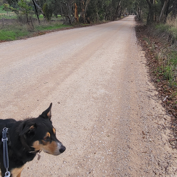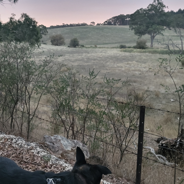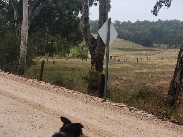 Tuesday 24th Mar There was no way Jasper was going to let me do the bike this morning. Thus, we ended up going to my favourite dirt track and did the 4 km at a semi-leisurely pace. Some colourful characters were in fine form, mainly galahs. The magpies were singing their best, and various wrens and lorikeets were also out and about today. Not as many kangaroos or Wallabies. But they were scattered through the distance paddocks. With all the stopping and starting that drove my app nuts, it took a touch over 60 minutes, and Jasper seemed much better for it.